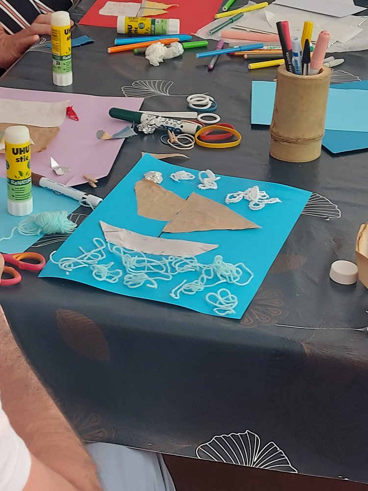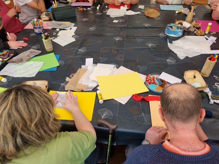 À partir de 15h, 12 participants, venus de 3 structures différentes, ainsi qu’une personne individuelle accompagnée de son aidante, ont pris part à un atelier d’arts créatifs animé par Isabelle Chevallier-Marchal, de l'Atelier Arts & Lettres, art-thérapeute certifiée.