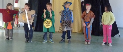 - Allier le geste à la parole par un travail d’expression corporelle en référence à différentes techniques théâtrales (chœur, commedia dell’arte, théâtre nature…).